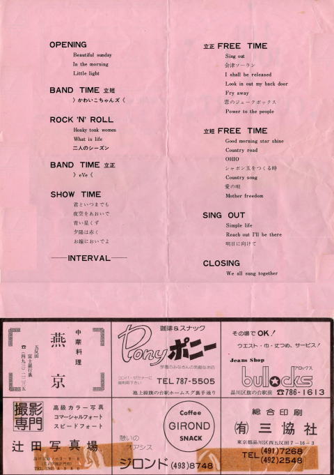 当時のコンサートの音源や資料はございません音源や資料をお持ちの方はご協力いただければ幸いです。